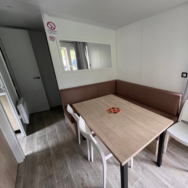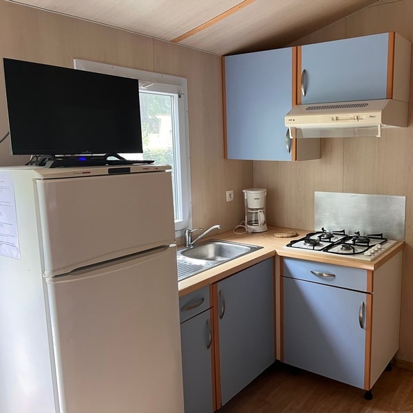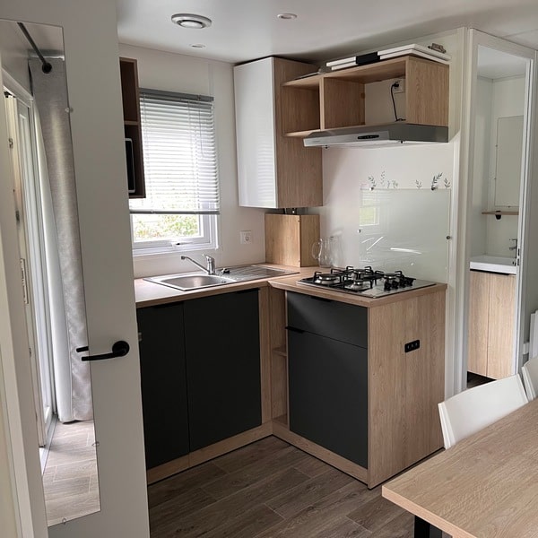 The same concept as the model above, but smaller! Accommodating up to 4 people, this mobile home gives you the opportunity to enjoy the camping experience with added comfort. From the garden furniture, breathe in the fresh air and enjoy the peace and quiet all around, just a stone’s throw from the bastide…